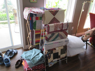 For some reason my pile of quilts to be quilted doesn't seem to be diminishing but that is because I keep finding more tops tucked away. I have a pile of backings to match up with the tops and am working slowly but diligently to get these layered and quilted.