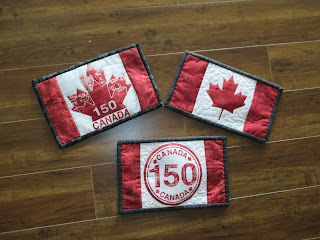 First project that is finished is my mug rugs celebrating Canada's 150th birthday. Fun project that I picked up at the sewing show in March from a cute little booth called Quincy's. They are from Alberta and I loved the projects that they had kitted up for sale.